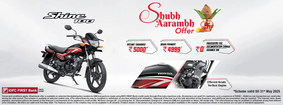 The all-new Honda Shine 100 with superior mileage and comfort features is now available at our showroom.